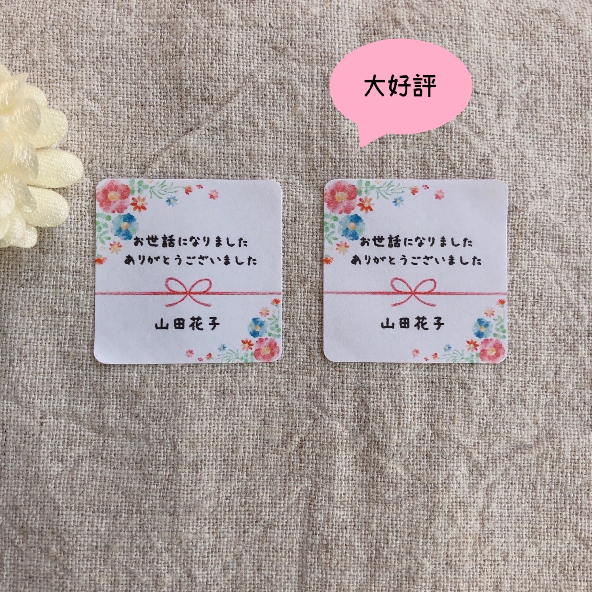 【名入れ】お世話になりましたシール お花 3cm正方形 40枚 ギフト・お菓子に NO.193