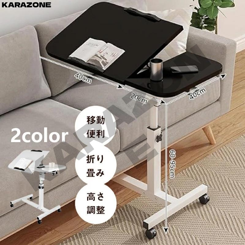 サイドテーブル 昇降式 パソコンデスク 高さ60-95cm キャスター付き 幅60 角度調整 無段階高さ調節 オフィス 移動式 勉強机 仕事 ベッドテーブル 介護用テーブル