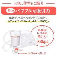 | 付属品 | ・吸引器本体 ・専用ACアダプター ・吸引チューブ ・チューブストッパー(ベビちゃんクリップ) ・ノズルコネクター ・シリコンノズル(スタンダードタイプ)2個 ・取扱説明書 ・添付文書 | ||