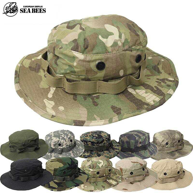 SEABEES seabees シービーズ ミリタリー百貨 1点ならメール便可 ミリタリー リップストップ ジャングルハット 迷彩柄 HH001NNブーニーハット メンズ レディース つば付き ミリタリーハット シンプル 探検 無地 帽子 カモ柄 あご紐付き ハットストラップつき sl2