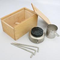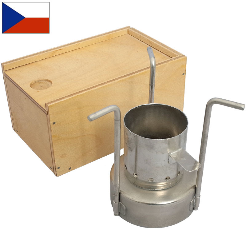 チェコ軍使用のコンパクトサイズのアルコールバーナーです。PREMA社製で60~70年代頃に採用されていました。しっかりした作りのステンレス製バーナーで、燃料は燃料用アルコールを使用します。風防と五徳もセットになっています。木製ケース付きでコンパクトに収納、持ち運びができます。