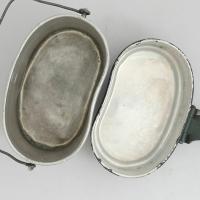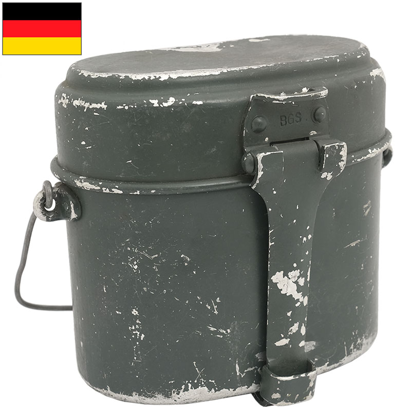 ドイツBGS(国境警備隊)のアルミ飯盒です。本体とフタの2ピース仕様で形はオーソドックスなキドニー型です。