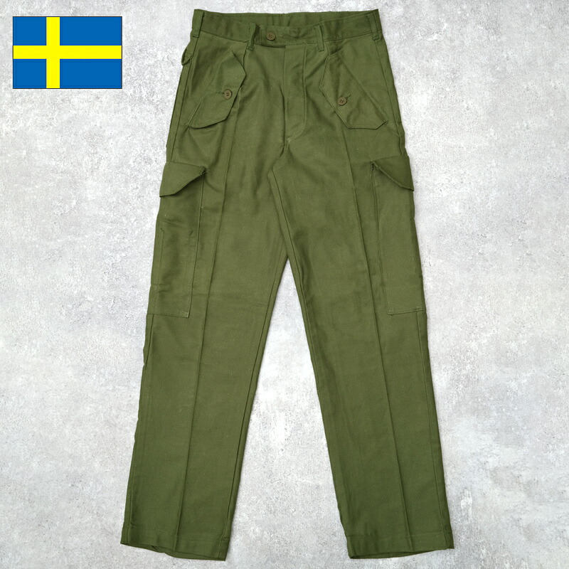 スウェーデン軍 M59 ワークカーゴパンツ グリーン コットンツイル デッドストック PP434NN SWD M-59 トラウザーズ ズボン 軍パン 細身 ストレート カジュアル 緑