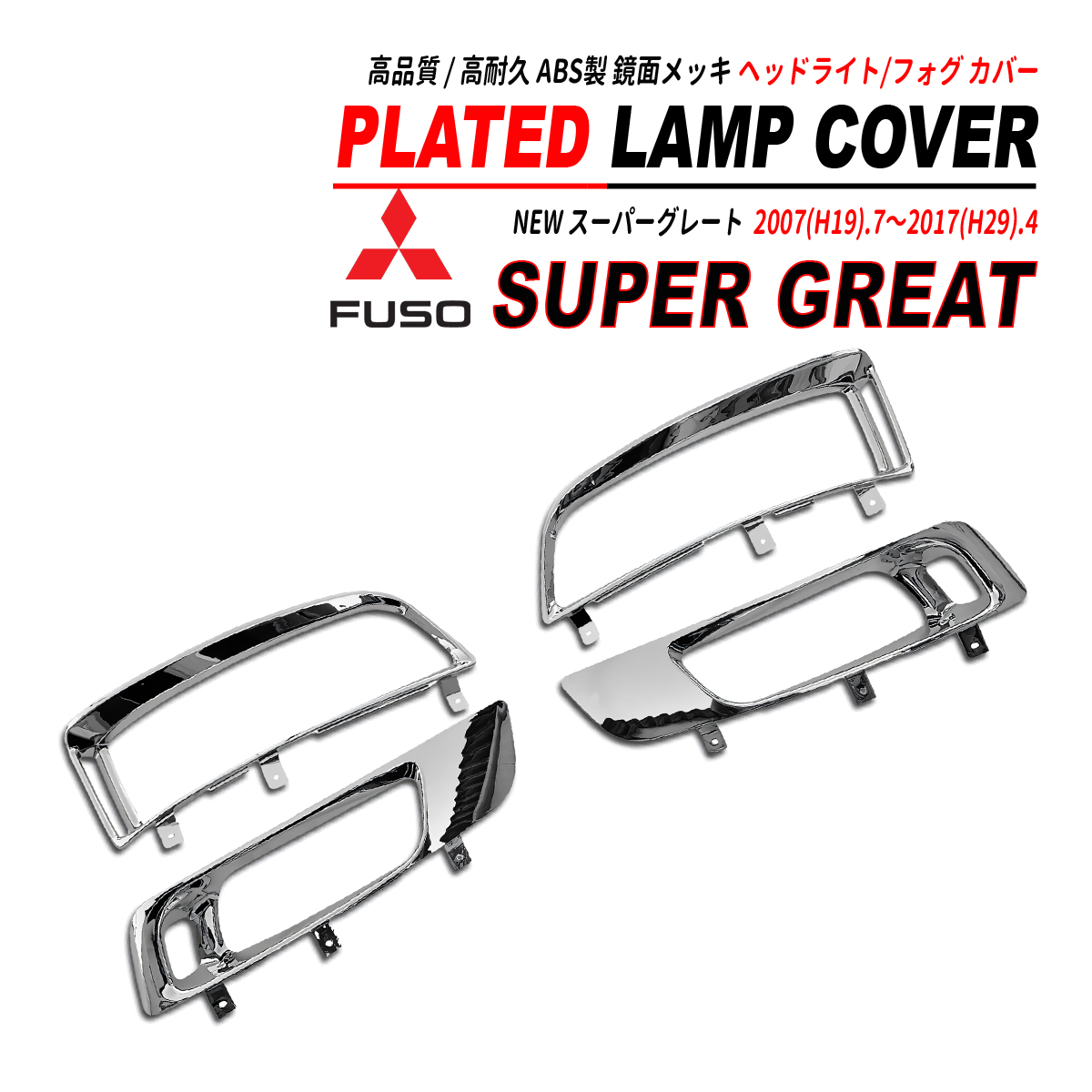 NEW スーパーグレート 鏡面 メッキ ヘッドライト フォグランプ ガーニッシュ 4PCS 2007(H19).7〜2017(H29).4 爆買