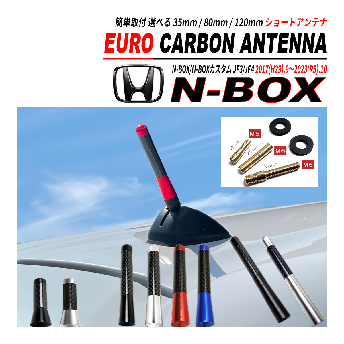 N-BOX N-BOXカスタム JF3 JF4 ショートアンテナ 純正交換 カーボン柄 ブラック シルバー ブルー レッド 3.5cm 8cm 12cm 爆買