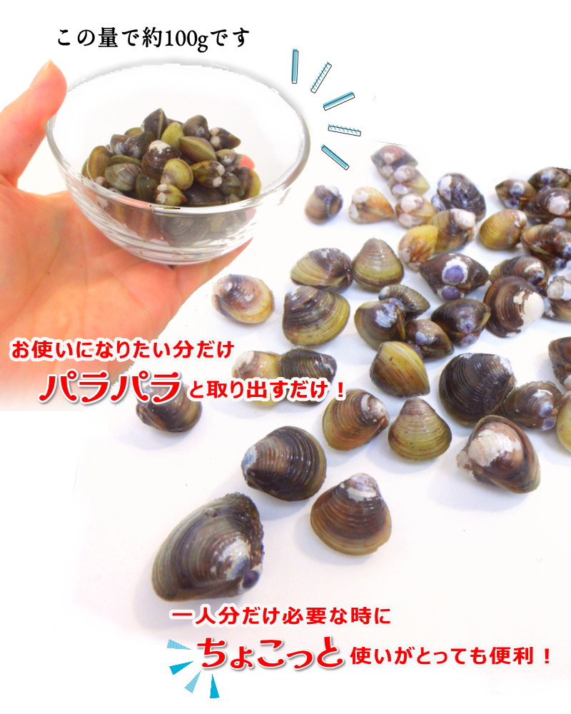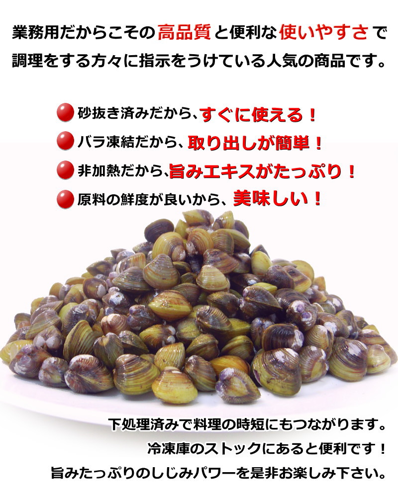 鮮度の良いしじみを砂抜きし、急速冷凍したバラ凍結品です。