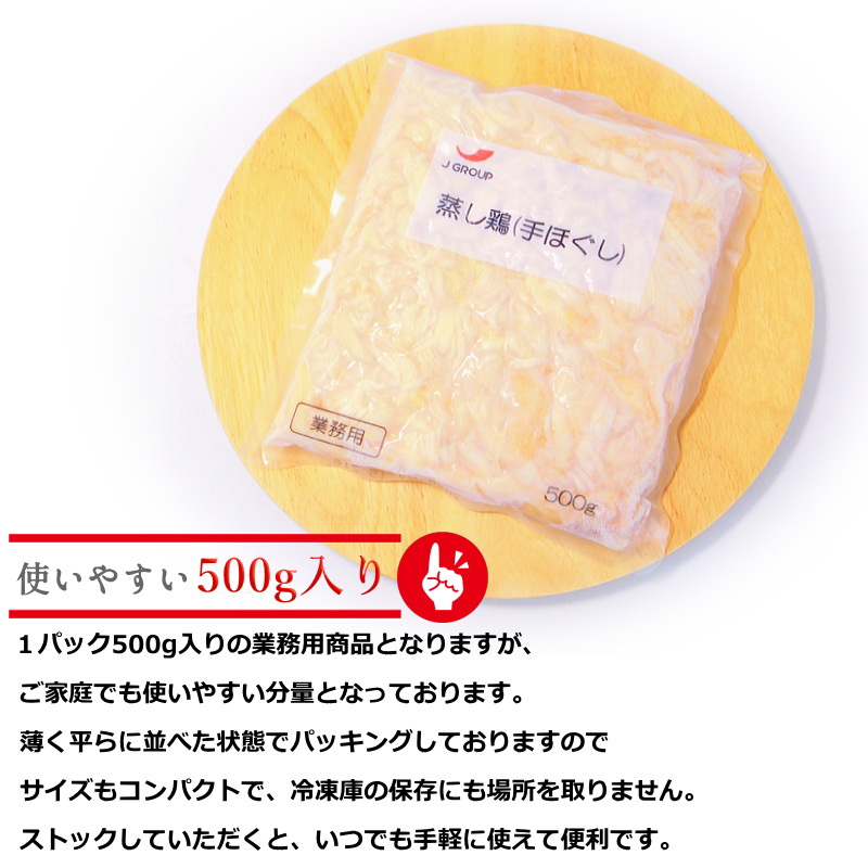 蒸し鶏 500g 業務用 ほぐし済み 鶏ムネ肉使用 薄味 蒸しどり サラダチキン 冷凍・蒸し鶏ほぐし身・