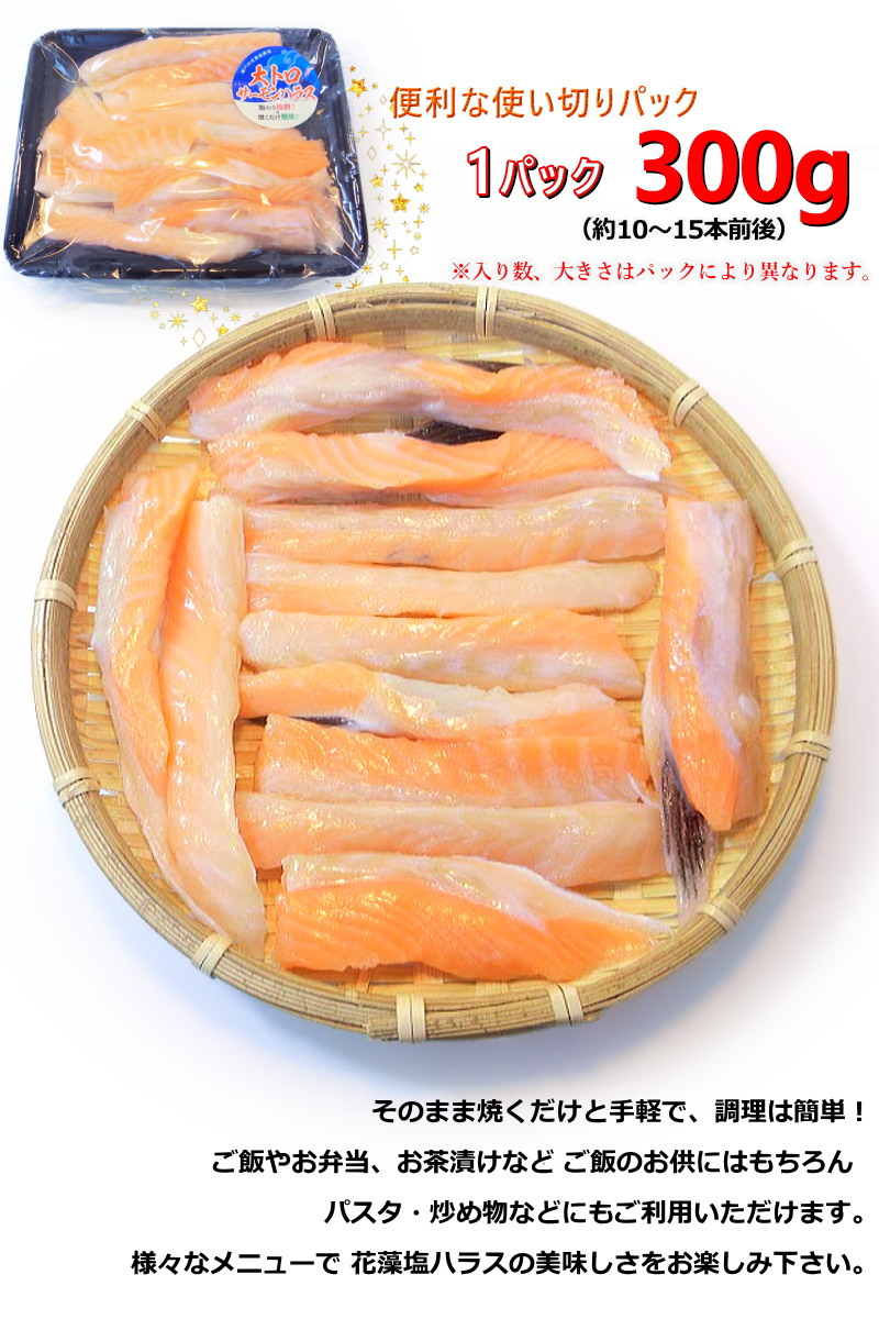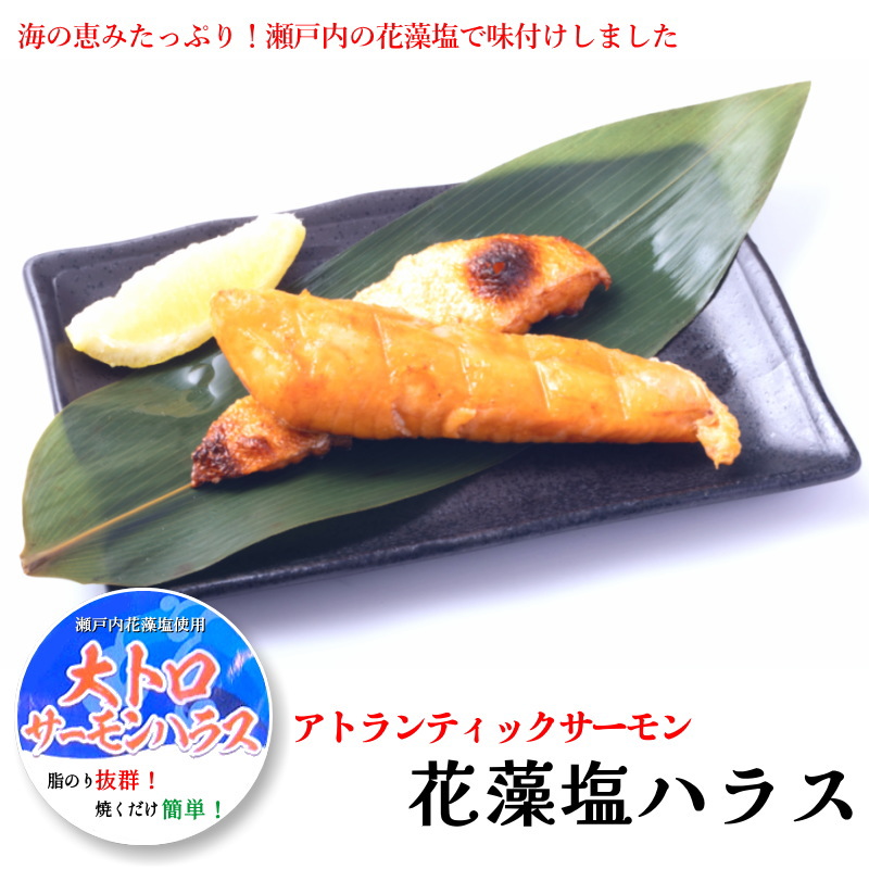 大トロ サーモンハラス 300g 瀬戸内花藻塩使用 大トロハラス ノルウェー産サーモン使用 冷凍 鮭 アトランティックサーモン・花藻塩ハラス300g・
