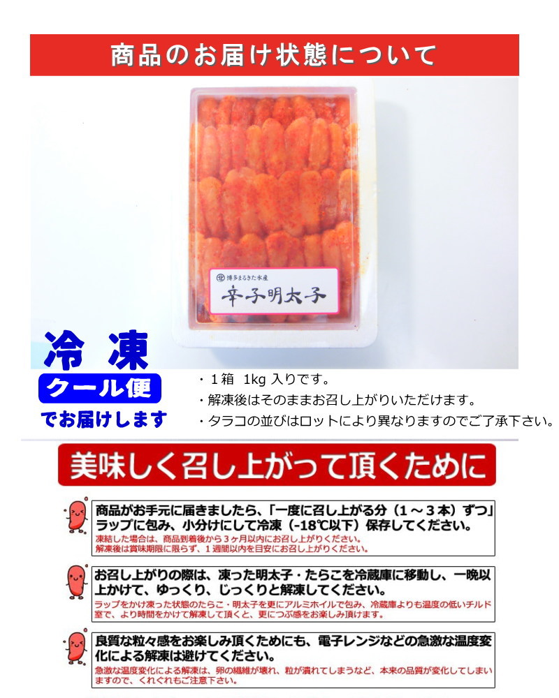 明太子 辛子明太子 博多まるきた めんたいこ 無着色 業務用 1kg まるきた 送料無料・まるきた明太子・