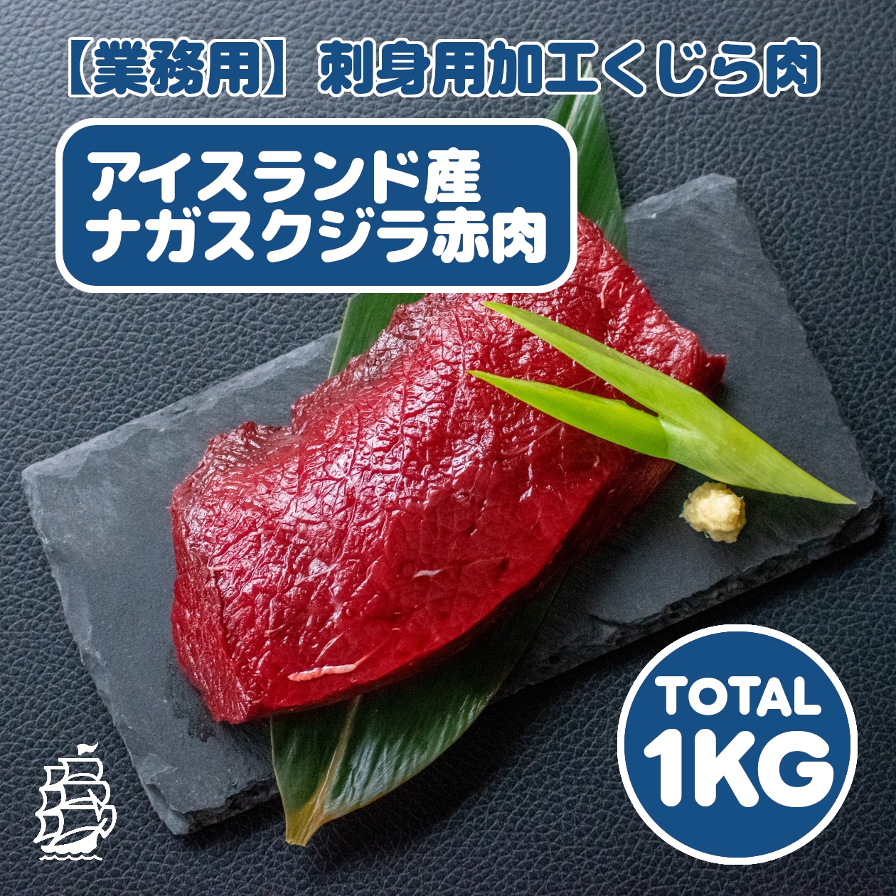 本製品の特徴:アイスランド産ナガス鯨の赤身肉を小ブロック(約200〜300g)にした冷凍製品です。
