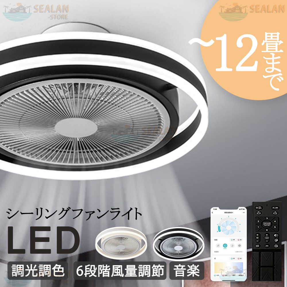 シーリングファンライト LED 音楽 ファン付き照明 Bluetooth 6畳 8畳 10畳12畳 調光調色 APP対応 6段調節 静音 軽量 扇風機 省エネ シーリングファン