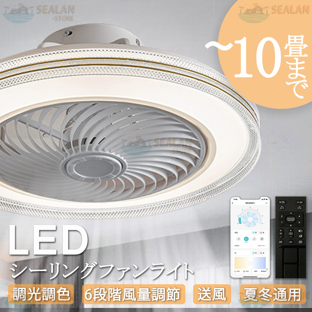 シーリングファンライトは6つ階段風量調節できます。ファンは正回転・逆回転2つ回転方向を搭載しています。夏には正回転で調整して、天井から扇風機ような爽やかな風を当たって、冬には逆回転で冷気を吸い上げて、暖房内の空気を循環して、不快の温度差を解消します。春秋に自然風量設定して、空気を循環させるとともに、部屋に干しした洗濯物も乾きやすいです。一年中お使えいただけます。実用感たっぷりです。