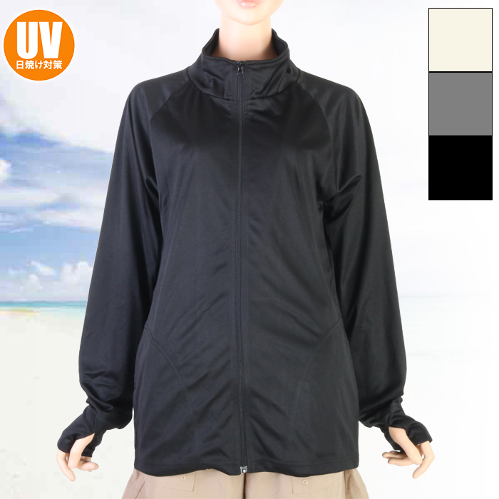 Fairy ロング丈 指穴付き無地スタンドUVジャケット 前開きラッシュガード UVカット(レディース水着/アウトドア)60102(パケット便送料無料)
