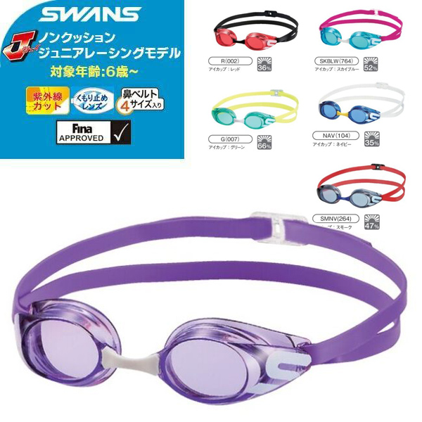 SWANS(スワンズ)ジュニア ノンクッション レーシングスイミングゴーグル SR-11JN(水中メガネ/競泳/FINA承認/日本製)(パケット便200円可能)