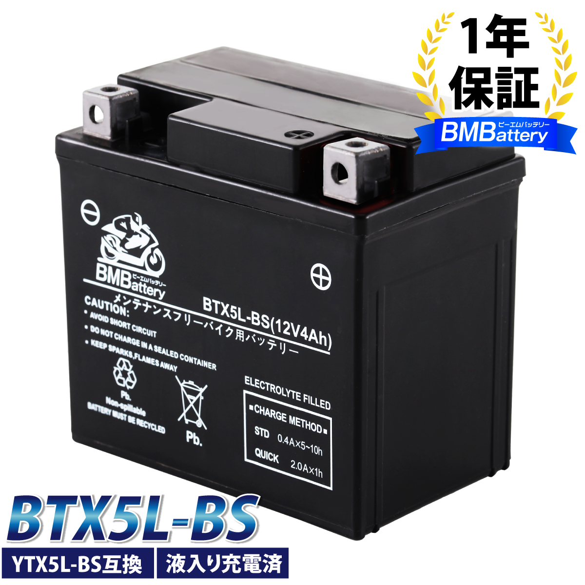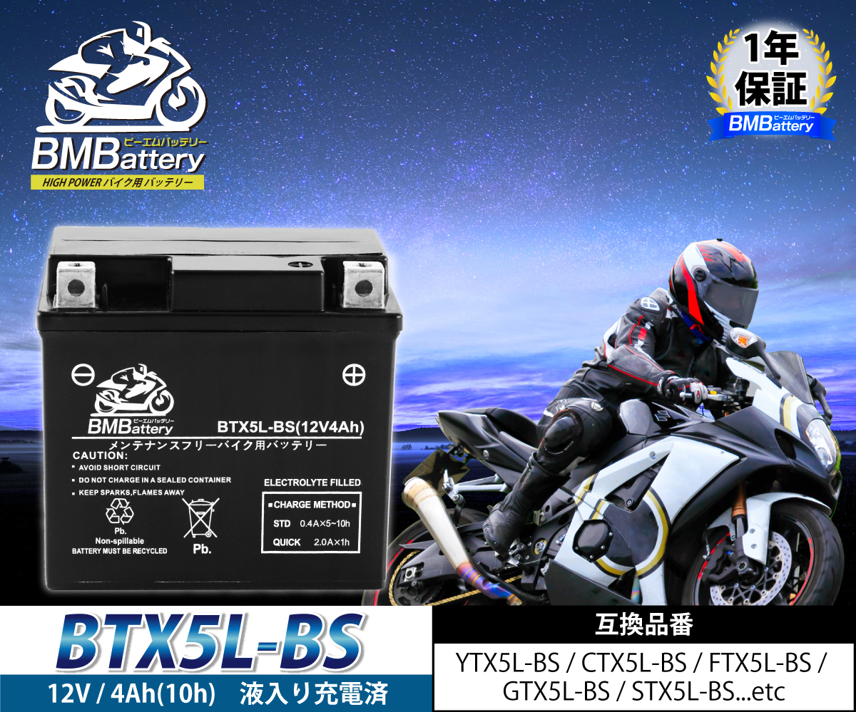 バイクバッテリー BTX5L-BS BM BATTERY 充電済み(互換YTX5L-BS CTX5L-BS FTX5L-BS GTX5L-BS KTX5L-BS STX5L-BS) ベンリィ FTR スペイシー XR400