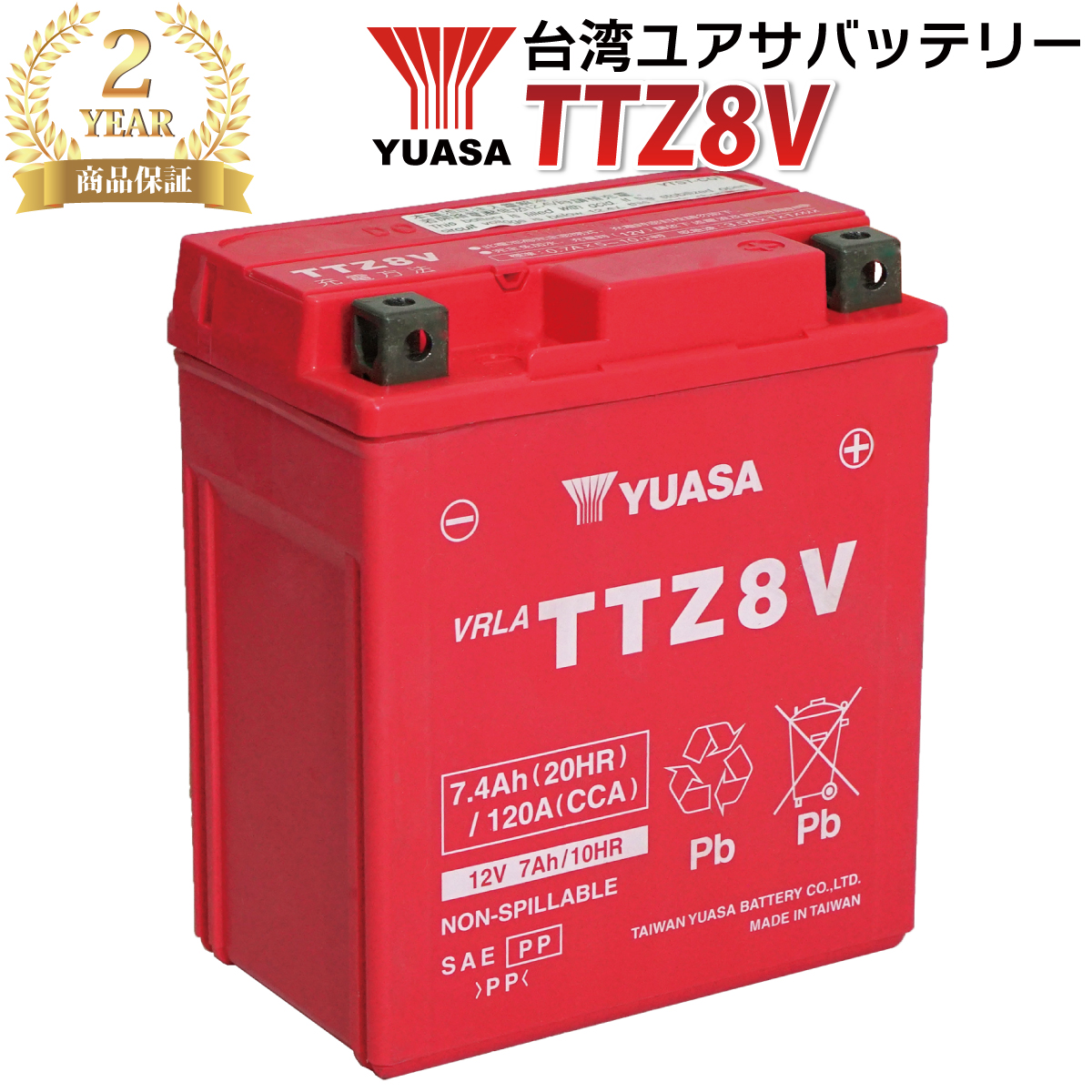 【2年保証延長】バイクバッテリー YTZ8V 互換【TTZ8V】ユアサ 台湾YUASA (互換: YTZ8V DTZ8V GTZ8V FTZ8V YTX7L-BS) 液入り充電済