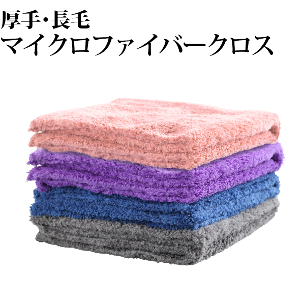 厚手 長毛 マイクロファイバークロス 40×40cm ブルー グレー パープル ピンク マイクロファイバータオル 洗車 掃除 速乾 吸収 超吸水 軽量 タオル ポイント消化