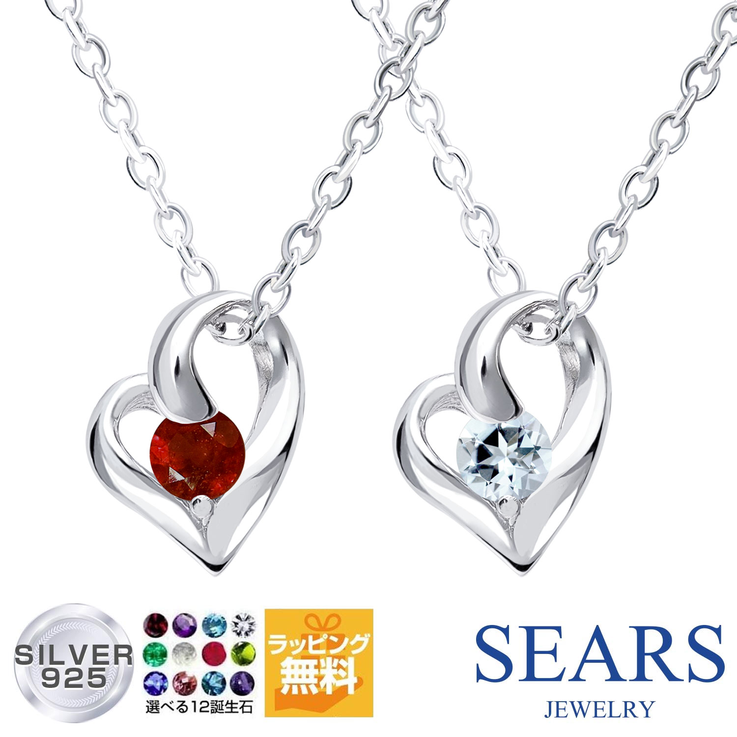 ネックレス レディース シルバー ダイヤモンド オープンハート 12誕生石 1月 ガーネット 誕生石 誕生日 プレゼント sears シアーズ