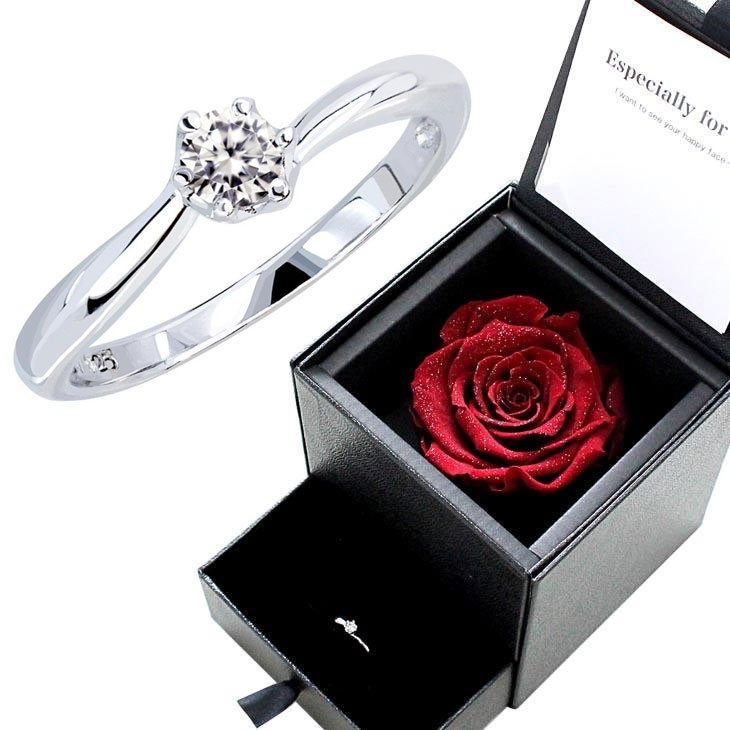 シルバーリング キュービックジルコニア プロポーズ 婚約指輪 プリザーブドフラワー 薔薇 ダイヤモンドローズ 小物入れ シアーズ