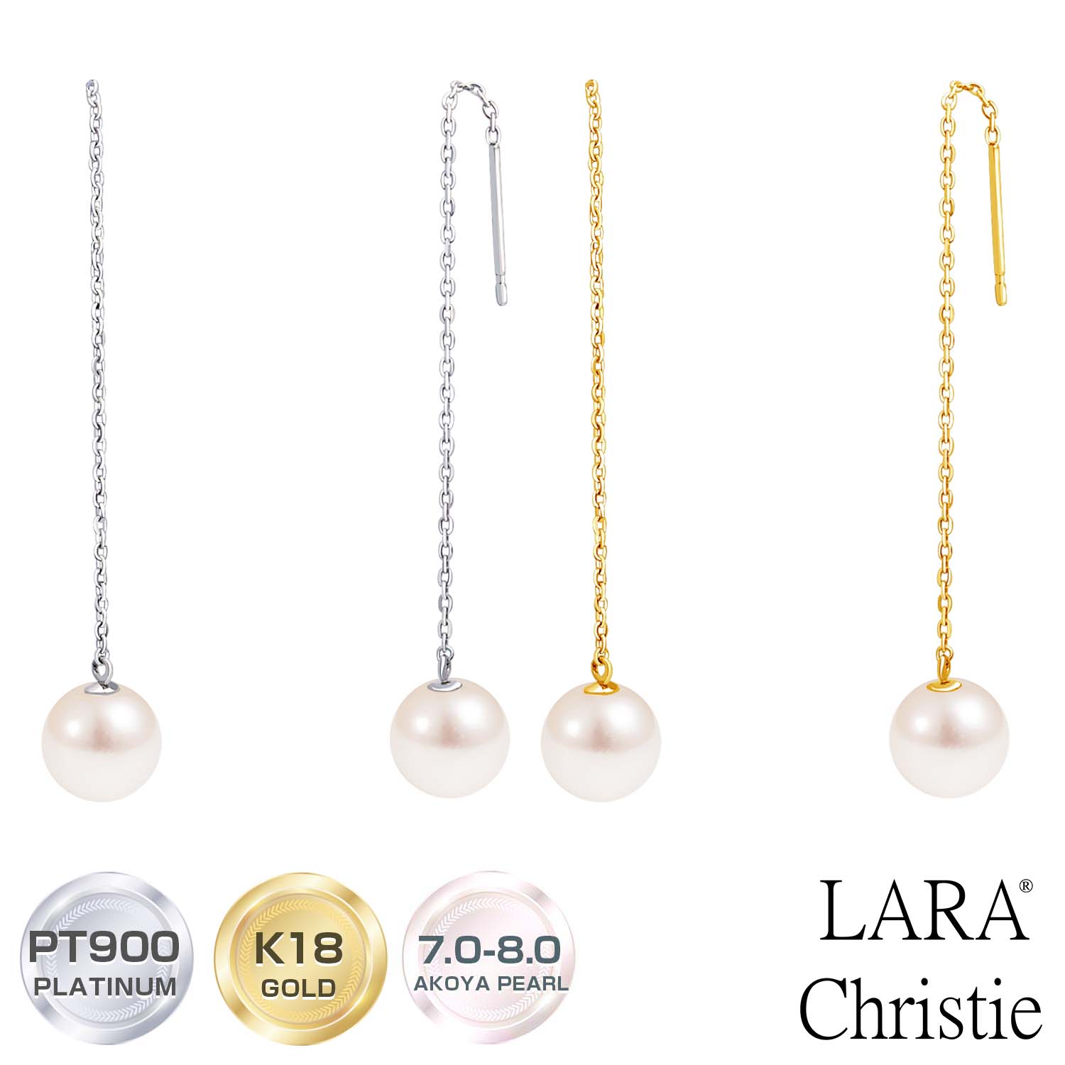 ピアス あこや真珠 アメリカンピアス 7.0-8.0mm レディース パール プラチナ 18金 PT900 ゴールド K18 ララクリスティー LPAC