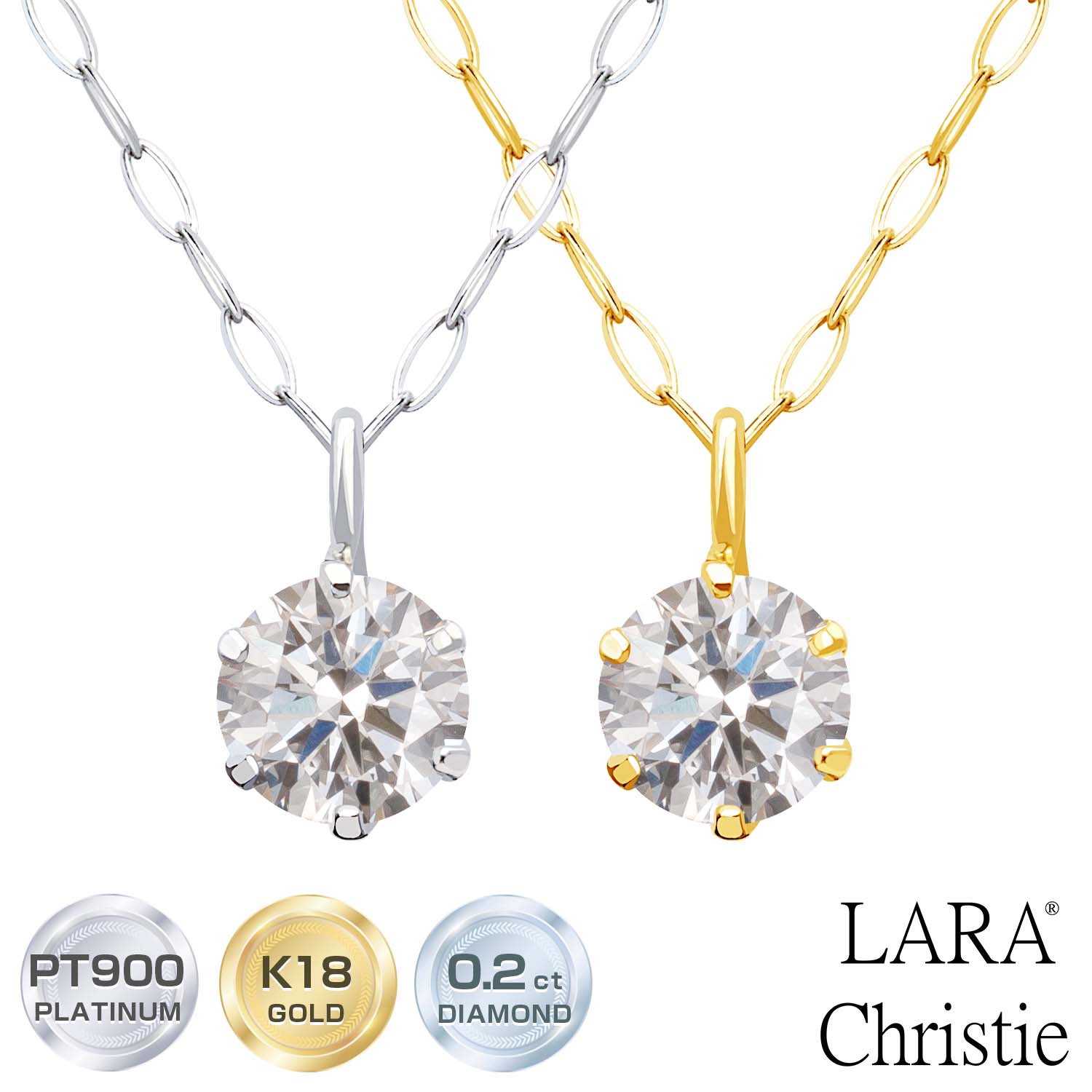 ネックレス レディース 18金 プラチナ ダイヤモンド 0.2ct 一粒 PT900 ゴールド K18 LPUC ララクリスティー