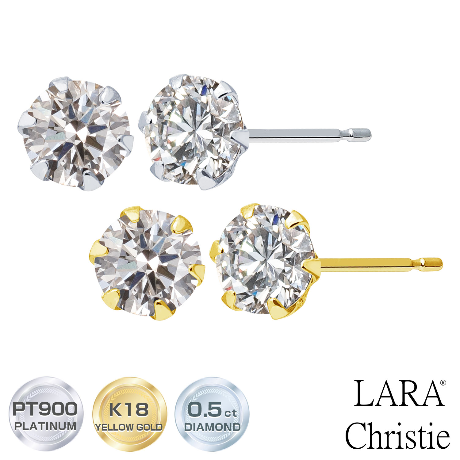 ピアス 18金 レディース ダイヤ 天然ダイヤモンド 一粒 計0.5ct プラチナ K18 PT900 ゴールド LPUC ララクリスティー