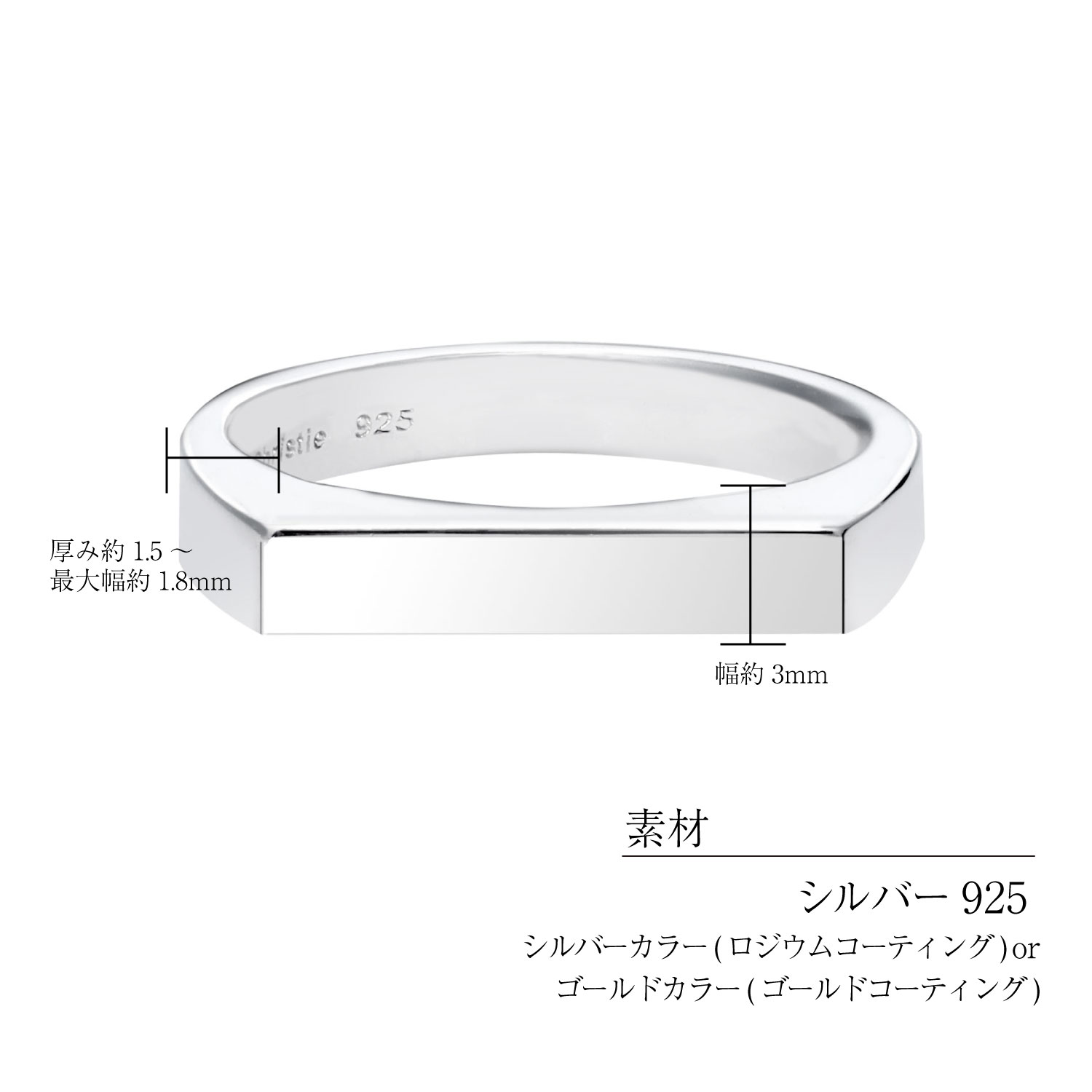 サイズ:トップ幅約3×厚み約1.5〜最大幅約1.8mm