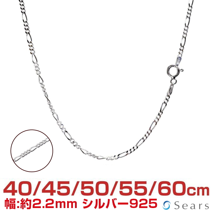シアーズ シルバーチェーン フィガロ 幅2.2mm 長さ 40 45 50 55 60cm 約4.9g(50cm) メンズ レディース