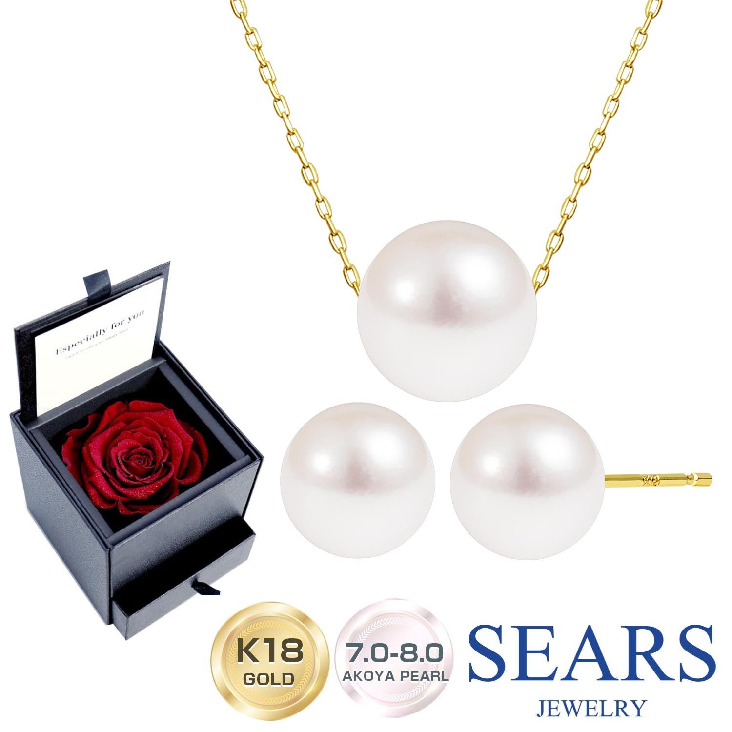 ネックレス ピアス セット レディース パール 一粒 あこや真珠 スタッド プリザーブドフラワー 薔薇 ローズ ボックス プレゼント ギフト シアーズ