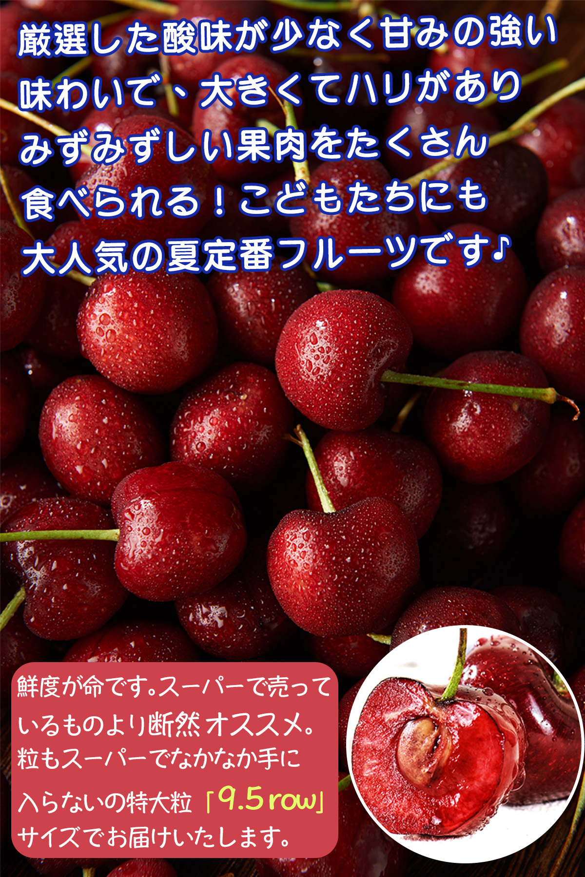 アメリカンチェリー 約1kg 特大粒 9.5row|空輸 日本向け高糖度で濃厚な甘み 大粒チェリー|鮮度優先 保鮮袋入|お中元・贈答用フルーツギフト|国内検品発送