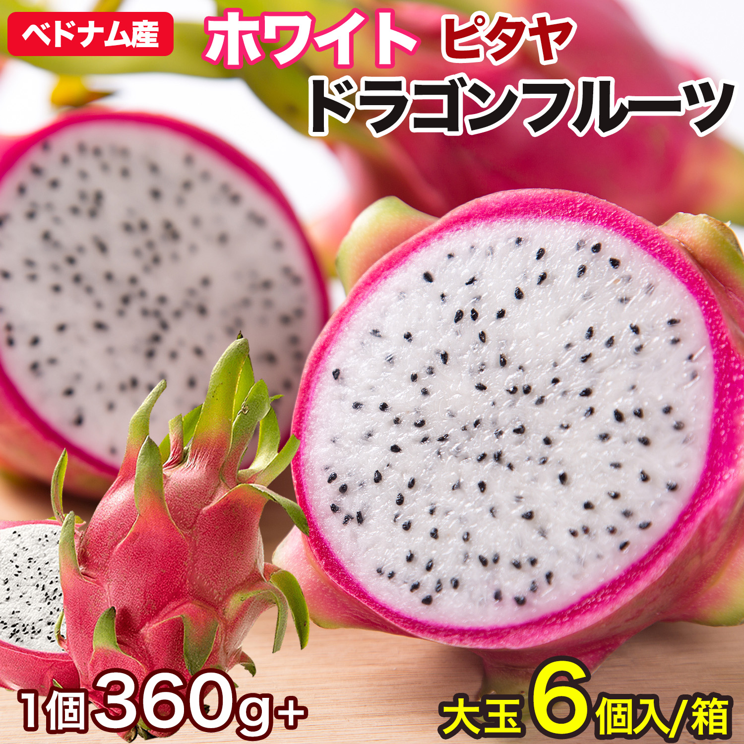 ドラゴンフルーツ(ホワイト)6個入 1個350g以上 約2.4kg ベトナム産 白肉腫 レッドピタヤ 日本向け火龍果 Dragon Fruit Pitaya 厳選南国フルーツ