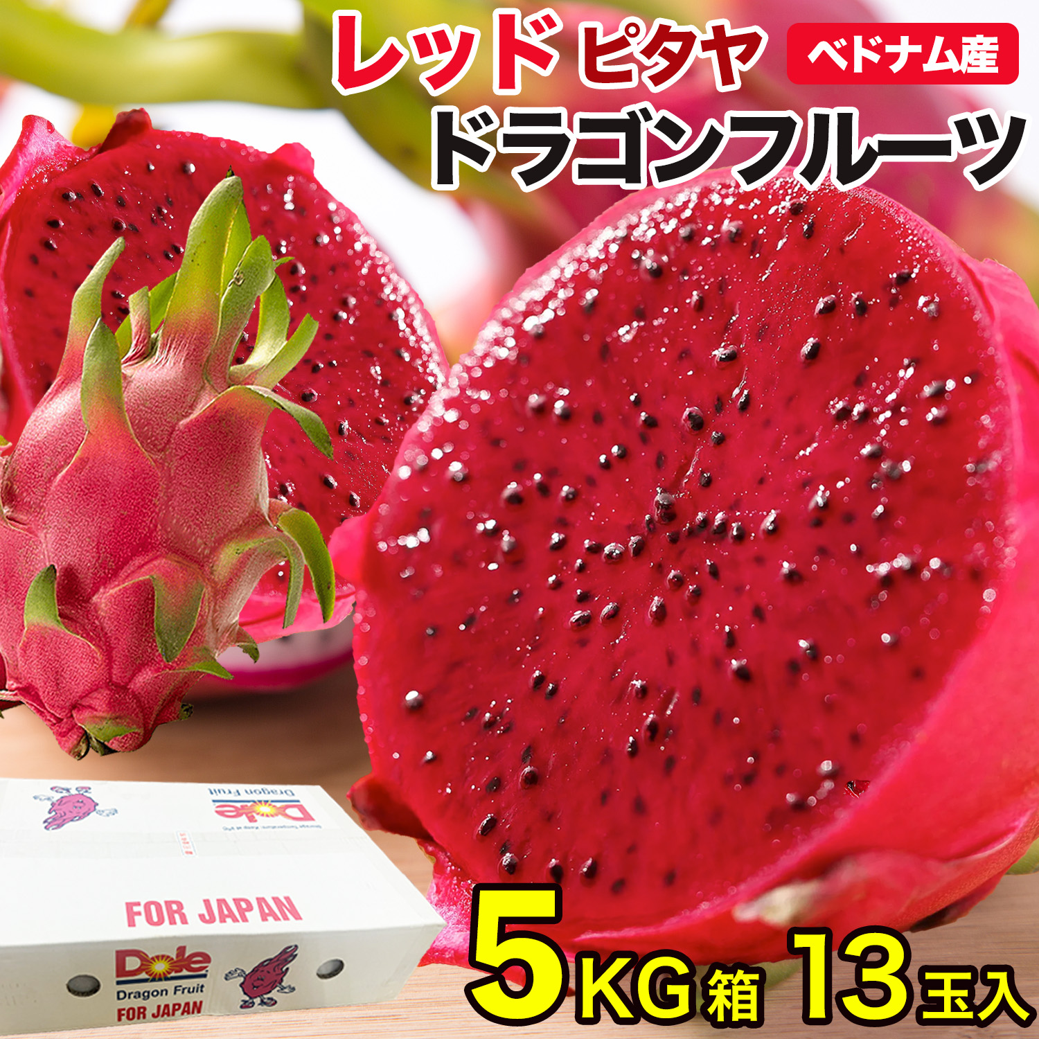 ドラゴンフルーツ(レッド)13個入 1個350g以上 約5kg ベトナム産 赤肉腫 レッドピタヤ 日本向け火龍果 Dragon Fruit Pitaya 厳選南国フルーツ