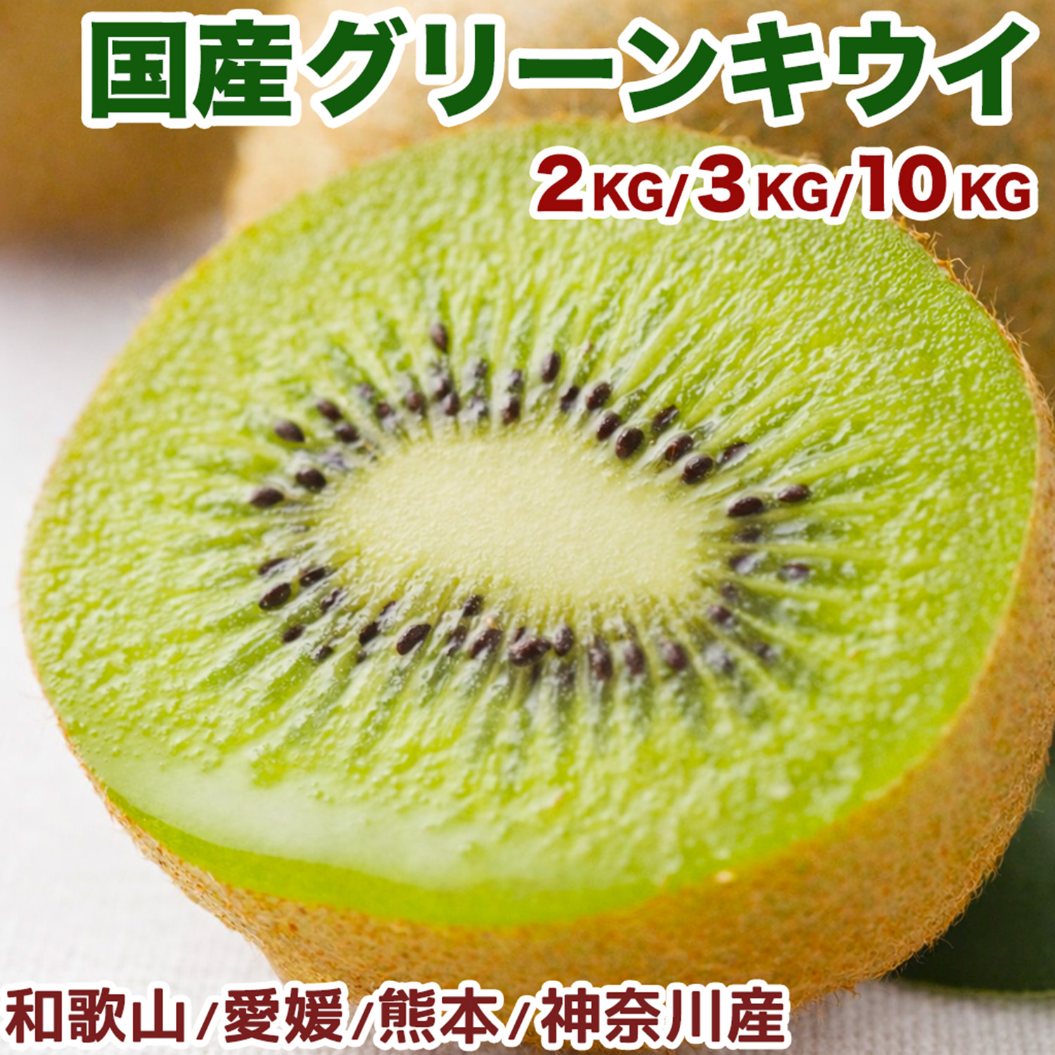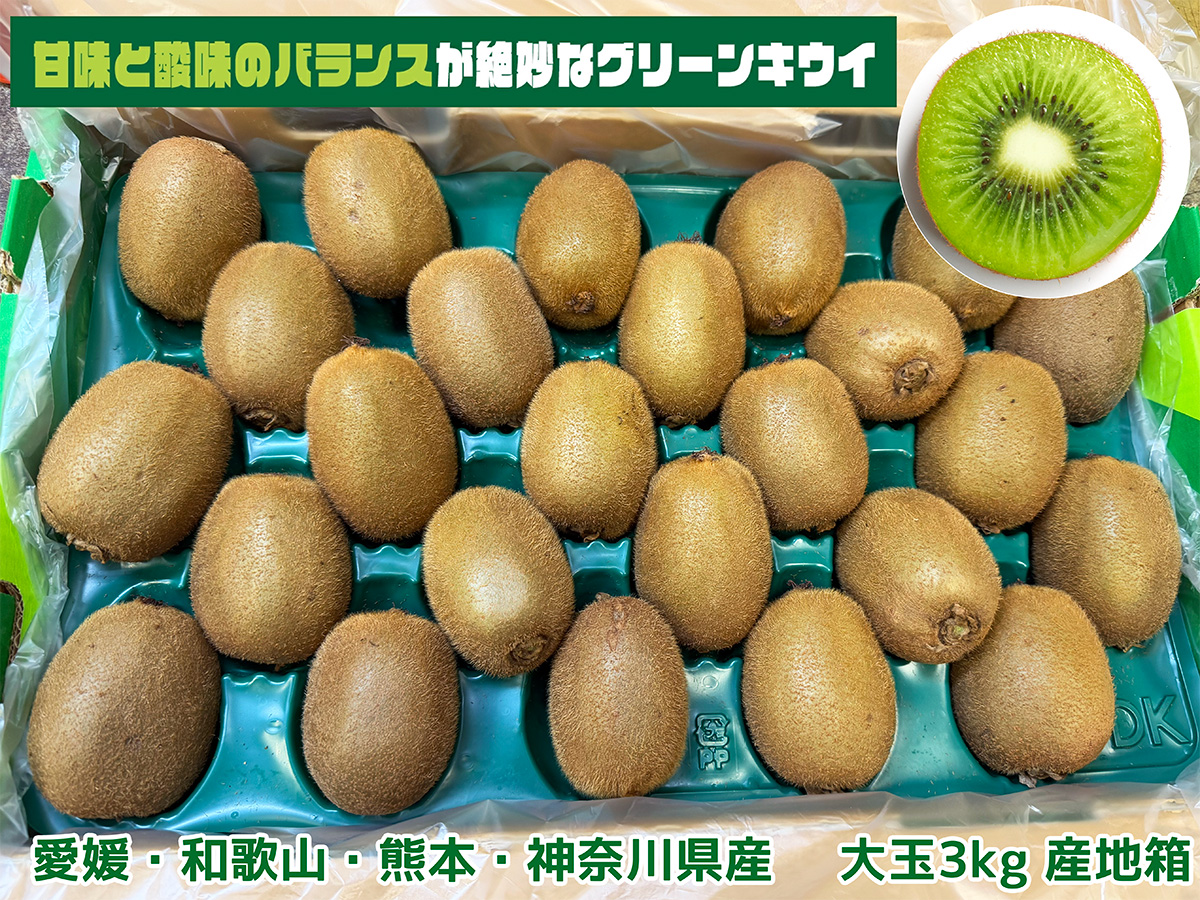 国産キウイフルーツ 大玉限定 2kg/3kg/10kg 愛媛・和歌山・熊本・神奈川産 |鮮やかな緑果肉と爽やかな甘みの甘熟グリーンキウイ|家庭用・贈答用|検品発送