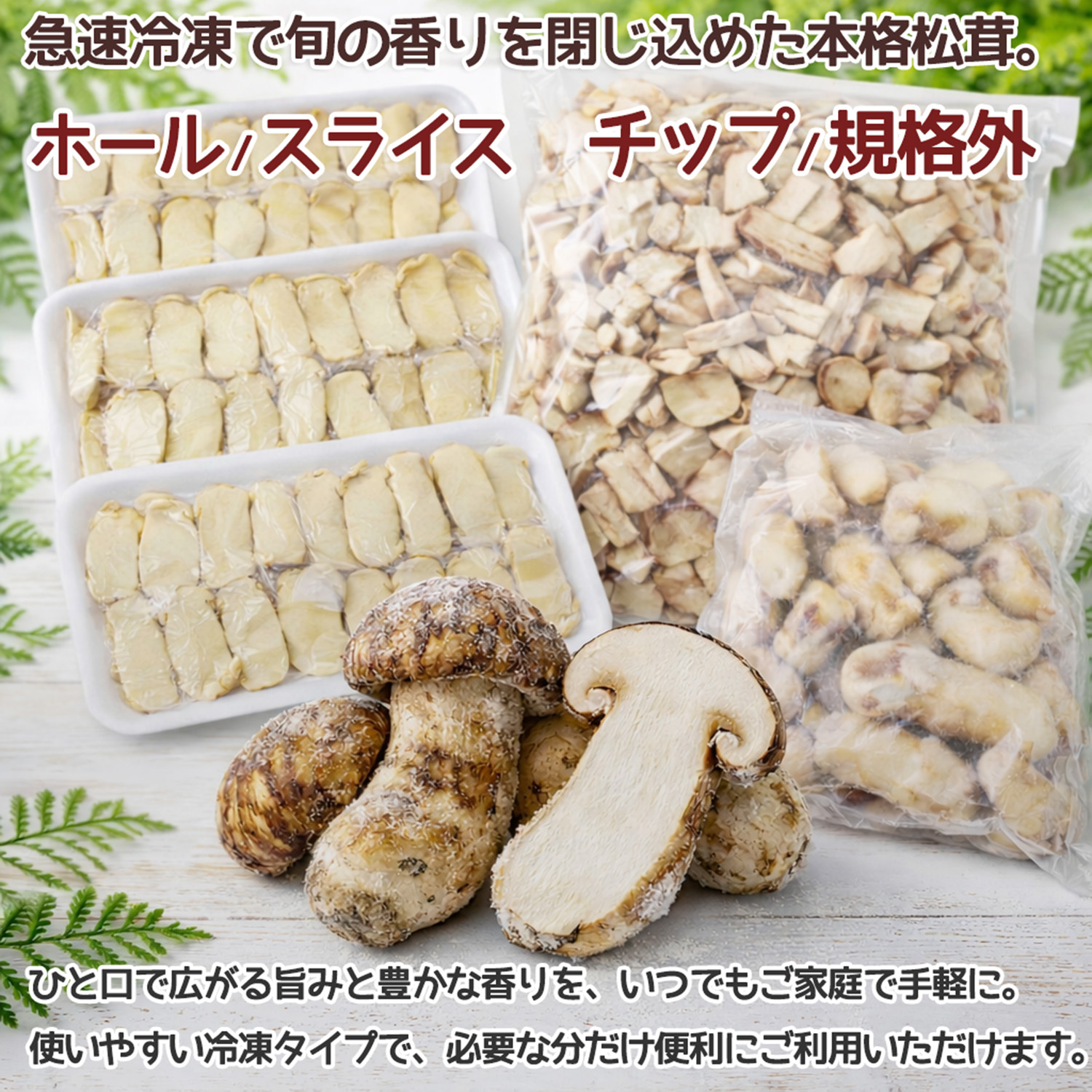 松茸 冷凍 約5kg ホール・スライス・刻みチップ|中国産 急速冷凍まつたけ|香り豊かな秋の味覚 松茸ご飯 土瓶蒸し 焼き松茸に|業務用 まとめ買い可|冷凍便
