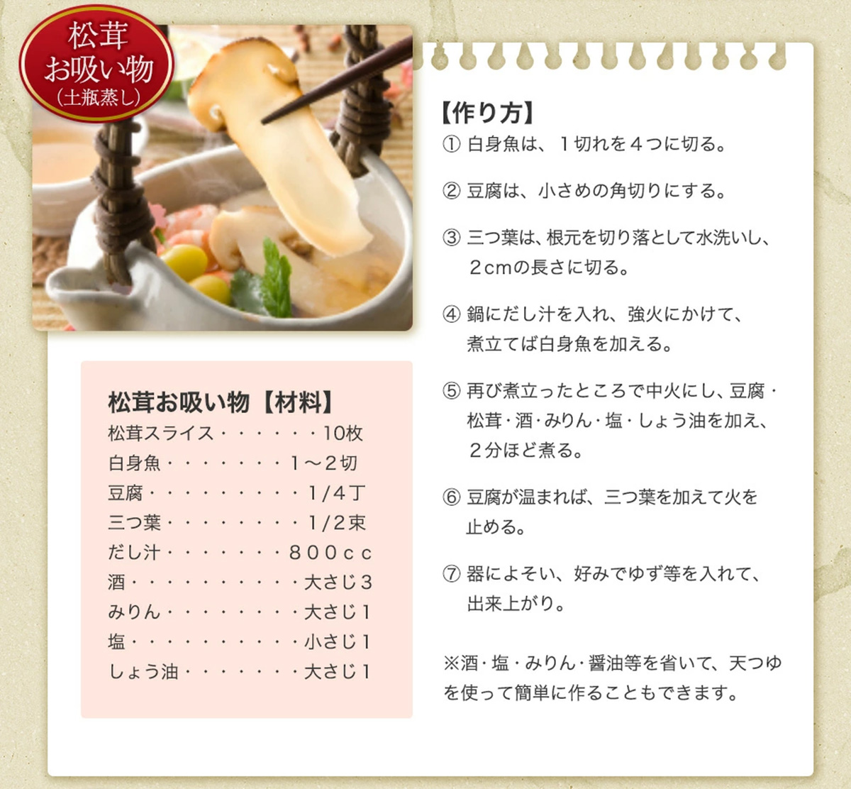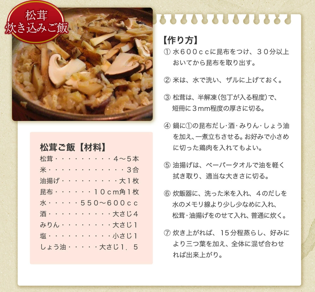 調理用途:松茸ご飯・焼き松茸・土瓶蒸しなど
