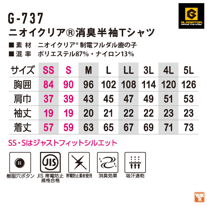 G-737 ニオイクリアEX 汗臭・加齢臭を0へ 気になる汗を無臭化分解 夏のニオイ対策 半永久持続 汗ジミ防止 スポーツ ワークウェア GLADIATOR コーコス