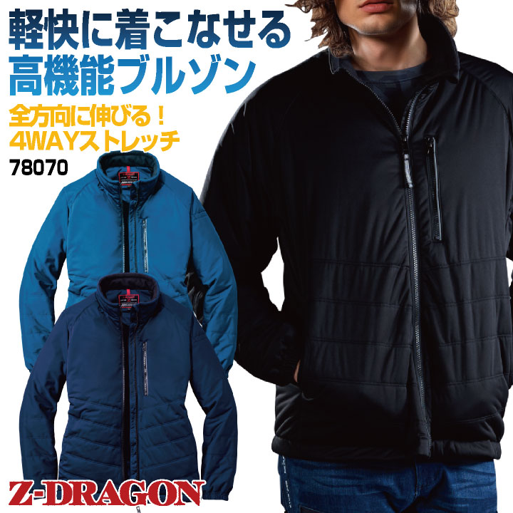 Z-DRAGONの軽量防寒ジャンパーは、4方向に伸びるストレッチ防風素材とTPUラミネート加工で、冷たい風を防ぎながら抜群の動きやすさを実現しました。