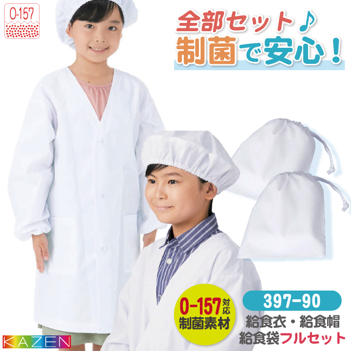 397-90SET カゼン 給食着3点セット 給食着 給食帽子 給食袋 春夏 秋冬 おすすめ 学校給食 学校 小学生 ユニフォーム 1号 2号 3号 4号 5号 6号 F ・モニターにより実際の色と多少ちがって見えることがあります。人気商品のため、商品在庫が欠品することがあります。