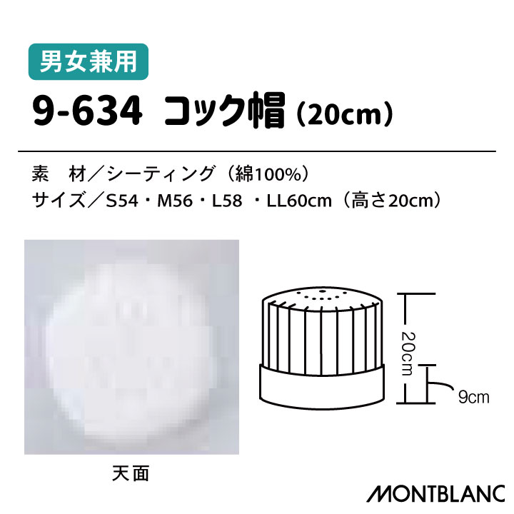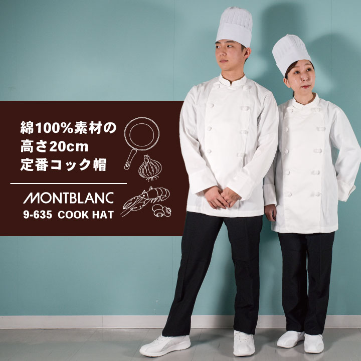 住商モンブラン 9-634 綿100%素材の高さ20cm定番コック帽 男女兼用 ・モニターにより実際の色と多少ちがって見えることがあります。人気商品のため、商品在庫が欠品することがあります。