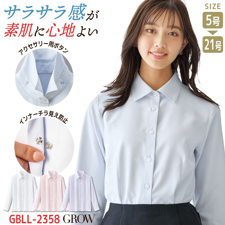 GBLL-2358 サーヴォ 長袖ブラウス 吸水・速乾に優れ、サラサラ感が素肌に心地よいバスケット織り素材。 ・モニターにより実際の色と多少ちがって見えることがあります。人気商品のため、商品在庫が欠品することがあります。