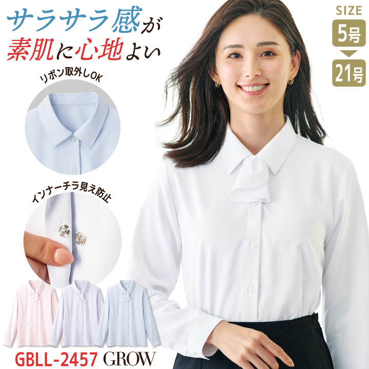 GBLL-2457 サーヴォ 長袖ブラウス リボン付き 吸水・速乾に優れ、サラサラ感が素肌に心地よいバスケット織り素材。 ・モニターにより実際の色と多少ちがって見えることがあります。人気商品のため、商品在庫が欠品することがあります。
