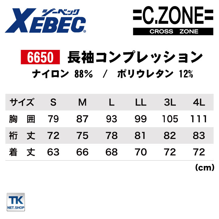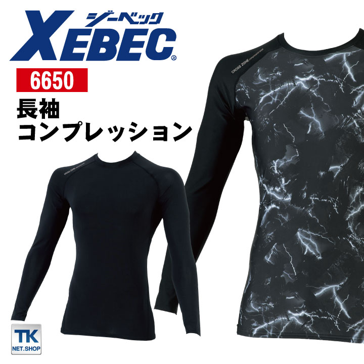 長袖コンプレッション 接触冷感 速乾 吸汗 消臭 紫外線カット メンズ インナー 作業服 作業着 ジーベック 春夏 秋冬 XEBEC ネコポス xb-6650