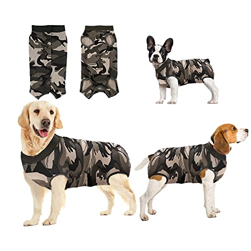 oUUoNNo 術後ウェア 犬のための回復スーツ 傷口保護 傷舐め防止 皮膚保護 避妊 離乳 不妊手術 ボタンタイプ 雄雌兼用 (XL, 迷彩)