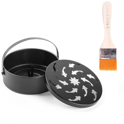鉄製でどっしりした重さがあり、蓋と取っ手付きのオシャレな蚊取り線香ホルダー。穴より風通しがよく、可愛らしい丸い取っ手の蓋と3点の足も付いていますので安全性があります。