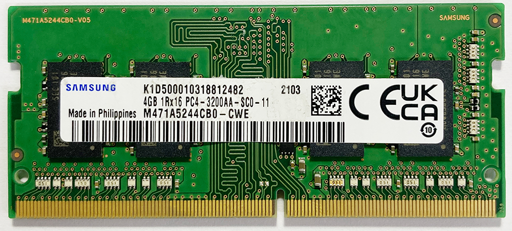ノート用メモリ 4GB/DDR4-3200/PC4-25600/S.O.DIMM/各種メーカー/新品PCからの抜き取り品 (DDR4-2666/PC4-21300互換性あり)
