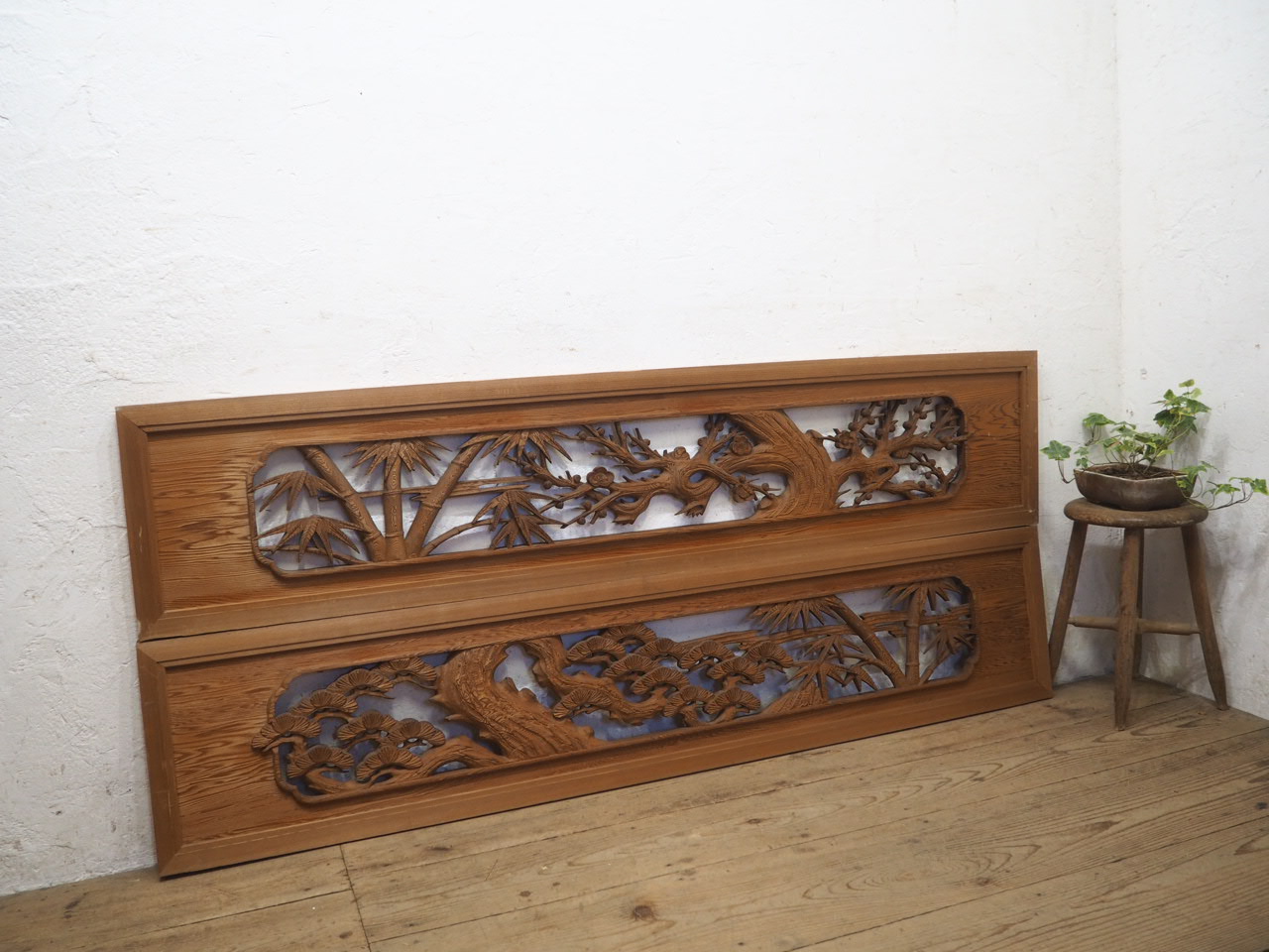 商品情報 | ■商品詳細■ レトロな古い木製欄間、2枚セットです。 長年使い込まれた味わいのある品です。 ガラスは入らない造りです。 一般のご家庭はもちろん、レトロな店舗什器にもお勧めです。 経年の傷や欠け、染みや木枠に欠け、 ヒビや古い補修等がありますが、使用には問題ありません。 古い物とご理解いただければ幸いです。 ご不明な点などありましたら、質問欄にてお願いします。 ■サイズ■ 全体(最大値) (H 37,5cm×W 177,5cm×D 3cm)×2枚 多少の誤差はご了承下さい。 ドライバー1人での配達になりますので、場合(通路が狭い等)によっては 荷運びのお手伝いをお願いすることがあります。 商品は玄関先までの配達になります。 |