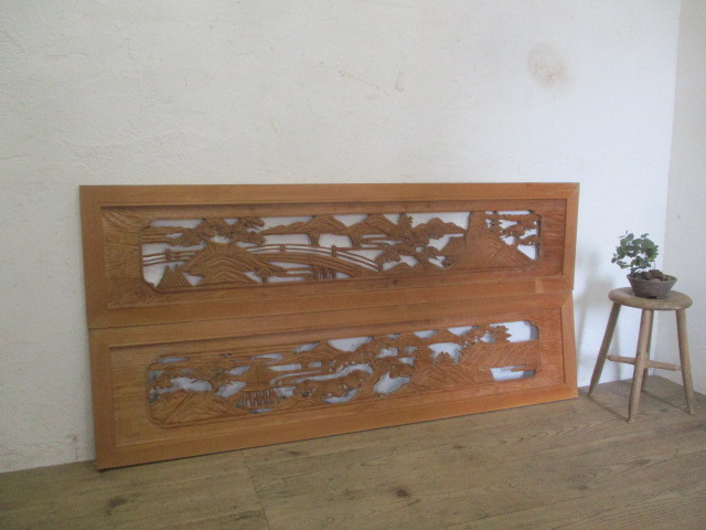 商品情報 | ■商品詳細■ レトロな古い木製欄間、2枚セットです。 木彫り細工のデザインが素敵な品です。 ガラスは無いタイプになります。 一般のご家庭はもちろん、レトロな店舗什器にもお勧めです。 経年の傷や欠け、染みや割れ等がありますが、使用には問題ありません。 古い物とご理解いただければ幸いです。 ご不明な点などありましたら、質問欄にてお願いします。 ■サイズ■ 全体(最大値) H 41cm×W 170,5cm×D 3cm H 41cm×W 171,5cm×D 3cm 多少の誤差はご了承下さい。 |