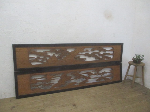 商品情報 | ■商品詳細■ 木彫りデザインのレトロな古い木製欄間、2枚セットです。 長年使い込まれた味わいのある品です。 存在感のある品で、レトロ空間の演出用や店舗什器にもお勧めです。 経年の傷や欠け、染みや彫刻パーツの割れ、欠け等がありますが、 使用には問題ありません。 古い物とご理解いただければ幸いです。 ご不明な点などありましたら、質問欄にてお願いします。 ■サイズ■ 全体(最大値) (H 37,5cm×W 186cm×D 3cm)×2枚 多少の誤差はご了承下さい。 |