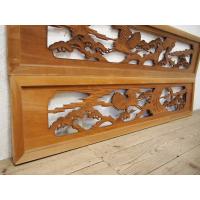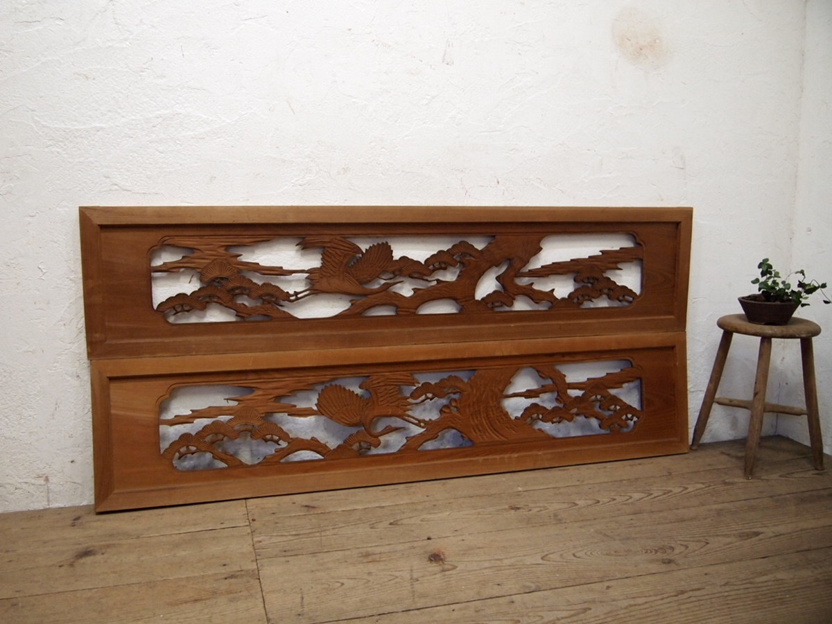 商品情報 | ■商品詳細■ レトロな古い木製欄間、2枚セットです。 長年使い込まれた味わいのある品です。 一般のご家庭はもちろん、レトロな店舗什器にもお勧めです。 経年の傷や欠け、染み等がありますが、使用には問題ありません。 古い物とご理解いただければ幸いです。 ご不明な点などありましたら、質問欄にてお願いします。 ■サイズ■ 全体(最大値) (H 37,5cm×W 171cm×D 3cm)×2枚 多少の誤差はご了承下さい。 |