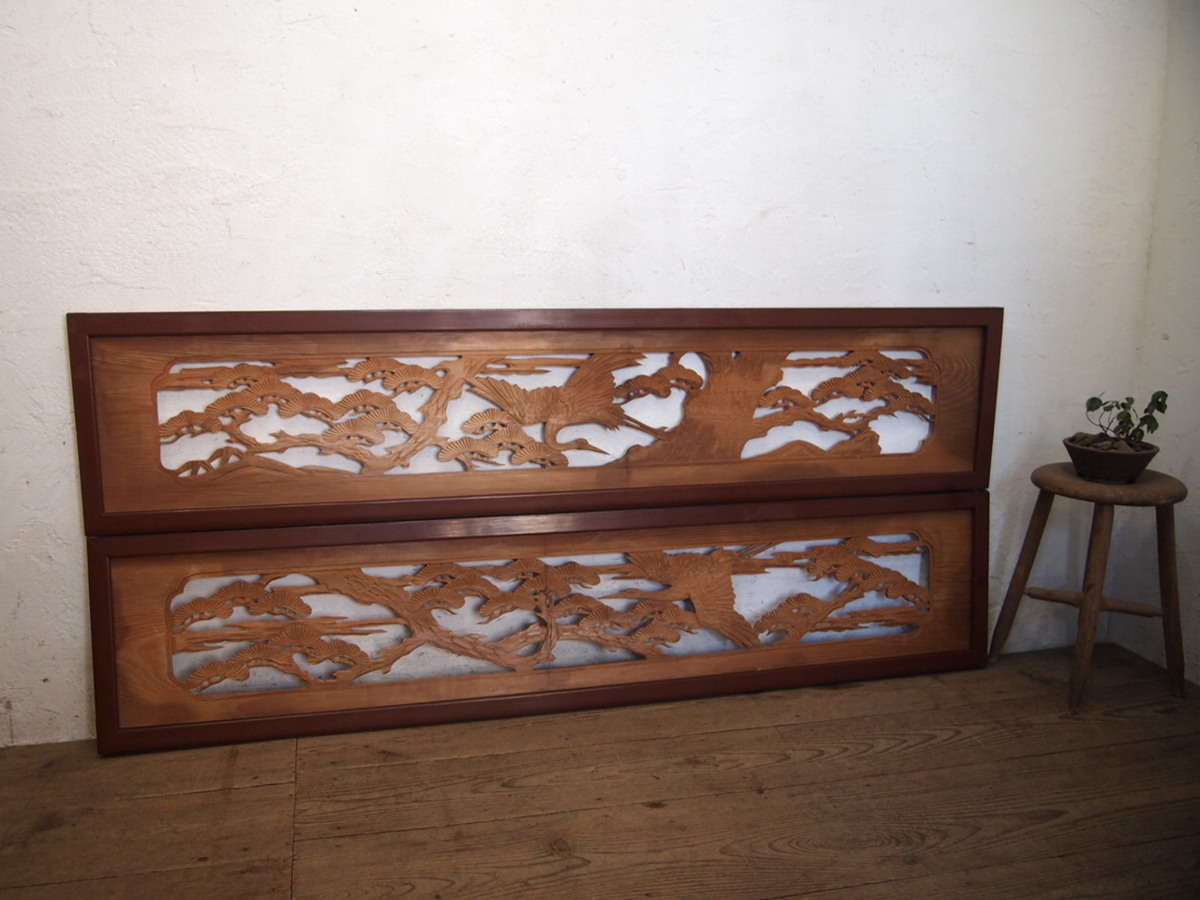 商品情報 | ■商品詳細■ 木彫りデザインのレトロな古い木製欄間、2枚セットです。 長年使い込まれた味わいのある品です。 存在感のある品で、レトロ空間の演出用や店舗什器にもお勧めです。 経年の傷や欠け、染み等がありますが、使用には問題ありません。 古い物とご理解いただければ幸いです。 ご不明な点などありましたら、質問欄にてお願いします。 ■サイズ■ 全体(最大値) H 37cm×W 172cm×D 3cm 多少の誤差はご了承下さい。 |
